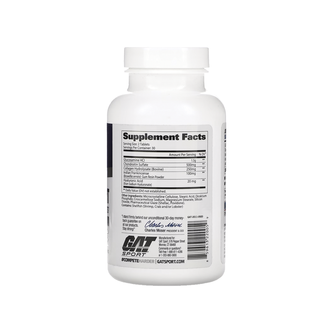 GAT Joint Support is a premium formula featuring Glucosamine and Chondroitin to support hardworking joints of athletes and bodybuilder seeking to achieve peak performance. GAT Joint Support also includes Collagen Peptides plus Hyaluronic Acid to promote optimal joint and bone health.